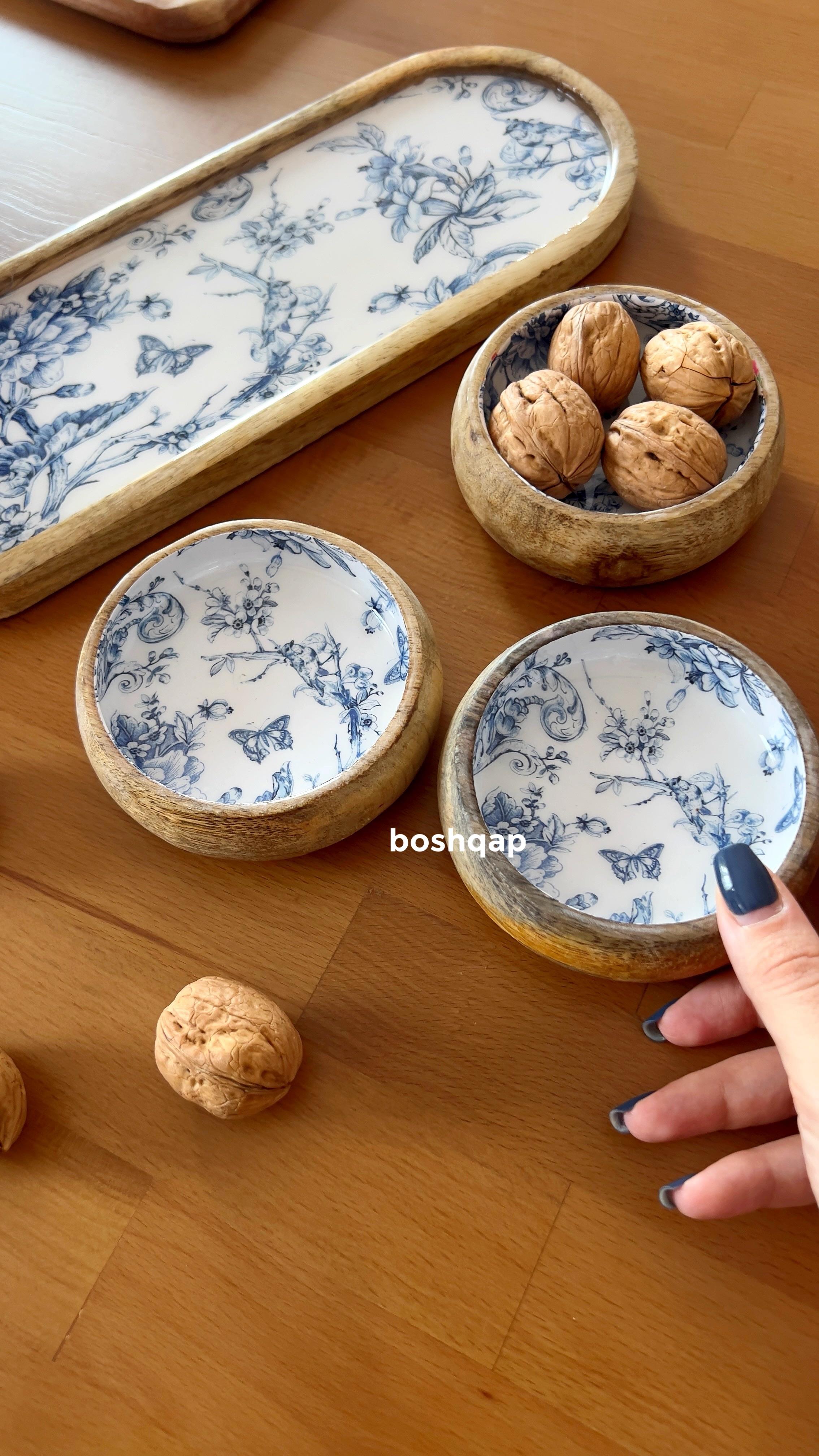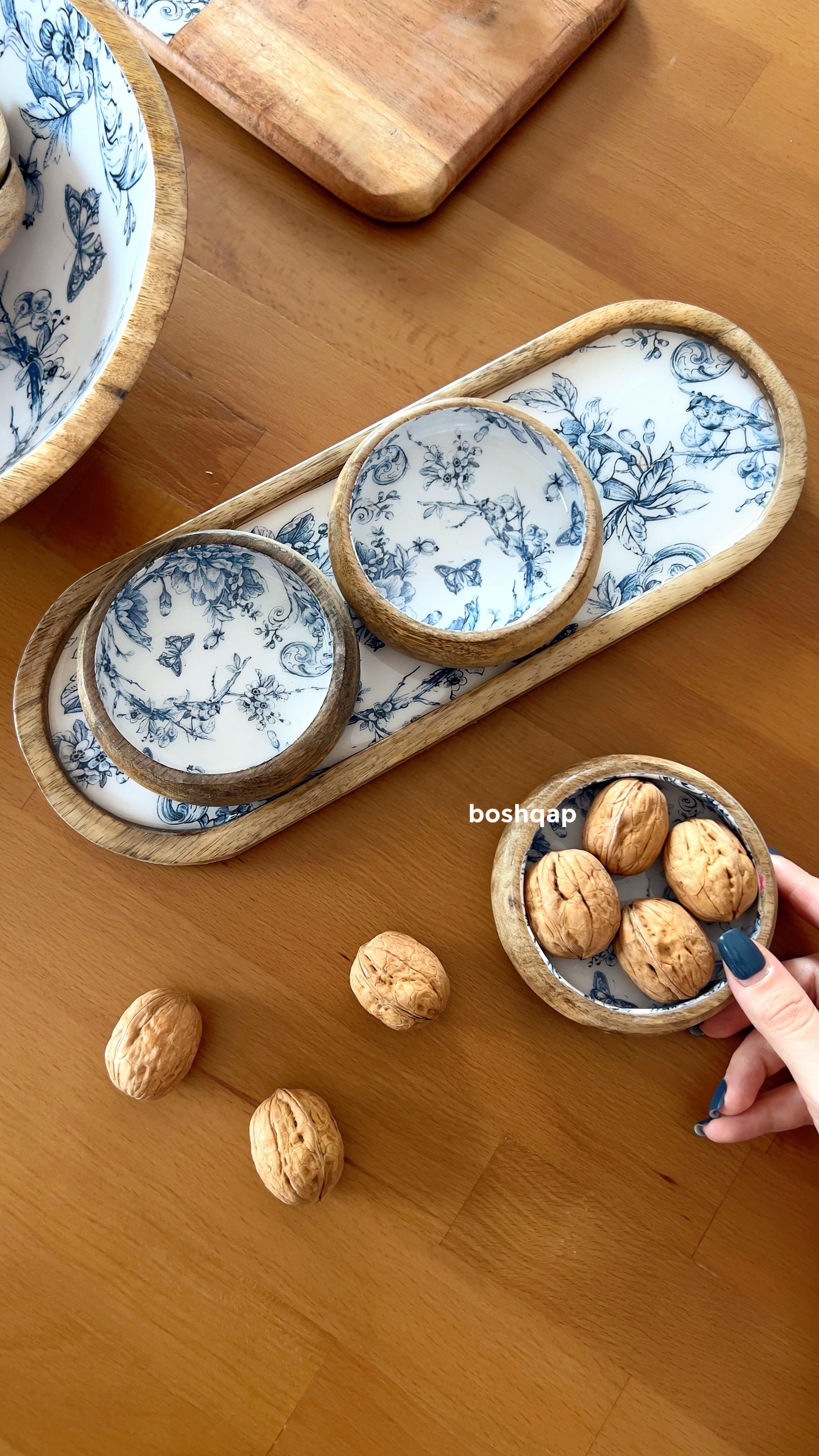 Blue Spring koleksiyonunun en sevilen parçalarından biri olan bu 4'lü çerezlik seti, doğal mango ağacının sıcak dokusunu zarif sunumlarla birleştiriyor. Elde hazırlanan özel yapısı sayesinde hem şık bir ikramlık hem de mutfağınız için estetik bir dekoratif obje sunuyor.